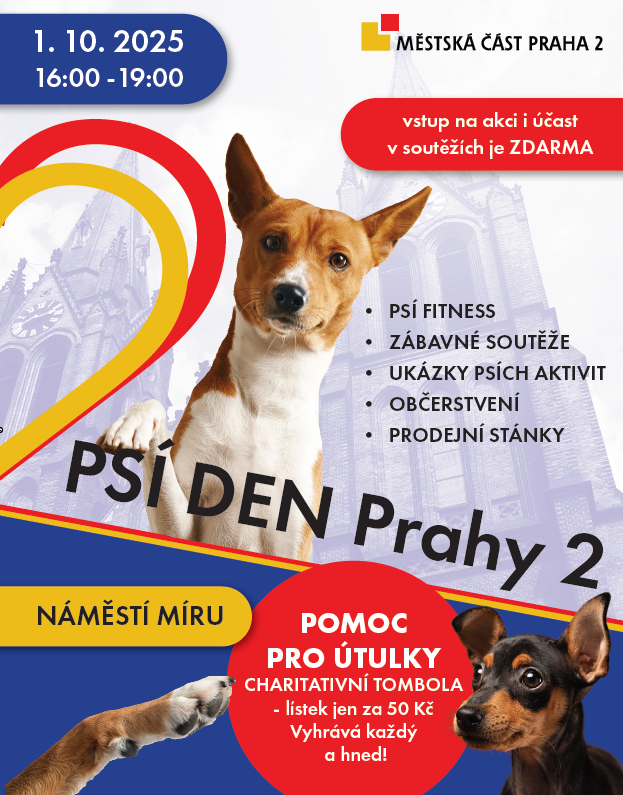 Ve středu 1. října 2025 od 16-19 hod. na nám. Míru – už tradiční akce pro všechny majitele a milovníky pejsků. Můžete se těšit na zábavný program, ochutnávky novinky z psího světa, stánky partnerů… Vstup ZDARMA!